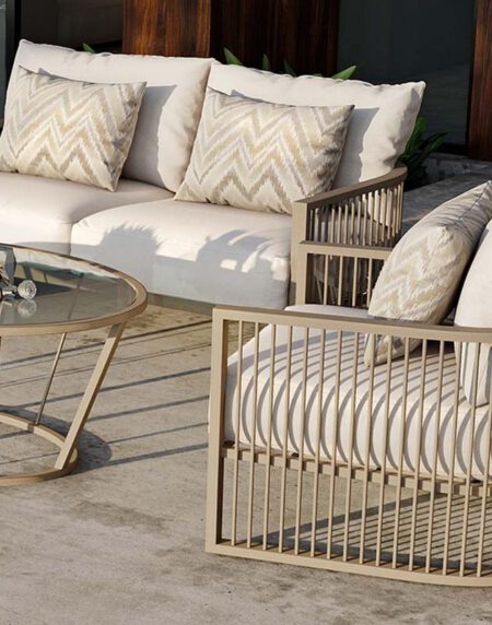 With a nod to modernism, the CASTELLE AVENUE Collection expresses an uncluttered, yet architectural, style perfectly designed for the outdoors. Created of vertical, linear elements and a curving frame, the AVENUE delivers embraceable comfort with tailored cushions. The slender three-quarter proportions of the AVENUE Collection create a complement for outdoor
