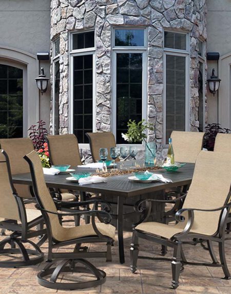 With the CASTELLE BELLAGIO collection, experience the finest in outdoor luxury. Classical inspiration meets modern luxury in a skillful combination of intricate details and design artistry handcrafted to last. In BELLAGIO, the cast empire style legs, curved arms with hammered details and classic cast seat backs, the CASTELLE BELLAGIO is