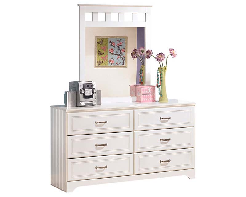 Give her the bedroom set of her dreams, at a price sure to put you at ease: the Lulu twin bed with dresser and mirror. Its clean lines and crisp white finish complement virtually every style of decor. Whether her new favorite color is pink, purple or blue, Lulu will be a mainstay.